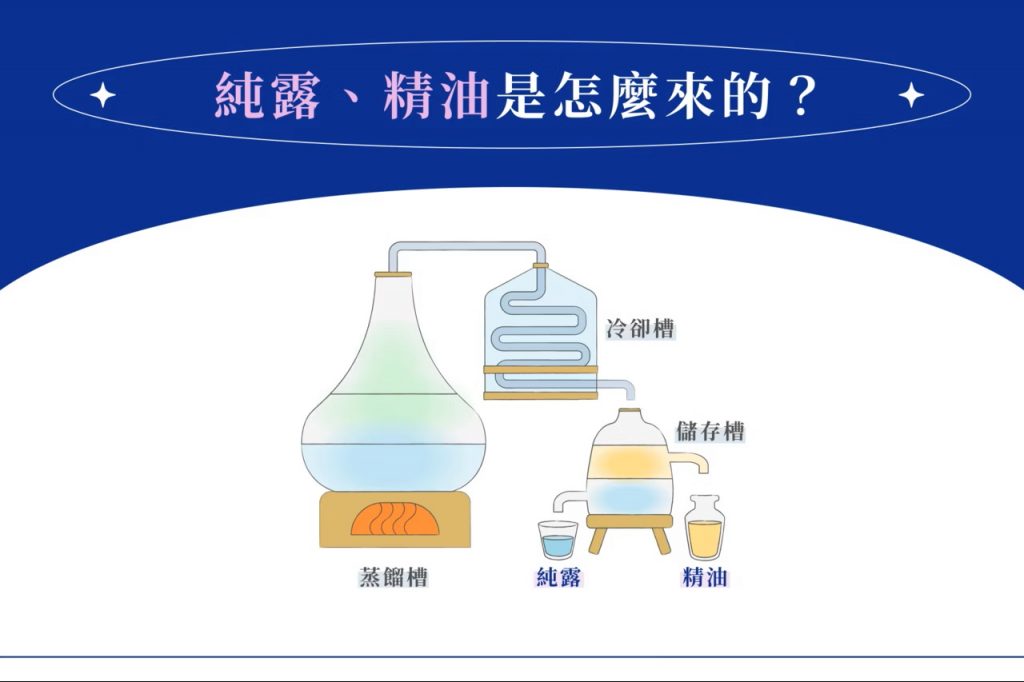 純露是蒸餾精油過程中的副產品,含有微量的精油分子與植物的水溶性精華,性質溫和。